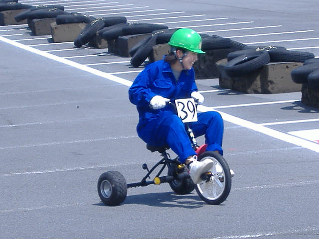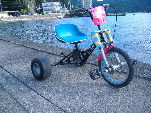 3輪ワールドグランプリ参戦マシン公開 初代資源ゴミ1号 監督の思い付で造ったマシン 文字通り資源ゴミとして廃棄予定だった子供用自転車に一輪車を合体させKARTの フロントタイヤをリヤタイヤとして取り付けかなり簡単に製作したマシン しかしこのマシンが果たした役割は大きく画像の通り普段は応援しかして無い女性陣 までもがご覧の通りの笑顔 監督の思惑通りサーキットを見る側の人々を走る側として参加してもらいレースの楽 しさと辛さを体験すると言う大役を完璧にこなしてくれた記念すべきマシン 資源ゴミ1号改悪 残念ながら画像は無い どうしてか?? スタートラインに並ぶもスタートと同時に壊れリタイヤしてしまいあまりのショックに写真を 撮らなかったのだ クラッチ機構が無いマシンの限界を思い知らされた初戦の反省から自転車のワンウェイ クラッチを移植したマシンを製作したのだが・・・ 主軸(クランクシャフト)が自転車のリヤアクスルシャフトのままで素材の構造的強度が 根本的に足りなかった為に「よういドン」「ポキッ」となってしまった 更にディープな三輪車の世界の扉を開くキッカケとなったヤバイマシンだった EVOLEXプロトタイプ1号略称「EPT1号」 資源ゴミ1号改悪の大失敗の反省を素直に反映させて製作したマシン フレームは初代から継承しているのでパッと見はシート位しか違いが無いようだが ワンオフパーツを製作して組み上げた正しく蠍テクノロジーの集大成に近いマシン このマシン製作の為と言っても過言では無いと思うが旋盤とフライス盤も購入し レース当日まで掛かっても完成しなかったマシンだ 参加予定のレース終了1週間経ちやっと完成した 心臓部の画像も公開しよう フロントセンターハブ ジュラルミンの無垢材から引き出したハブに工業規格のベアリングを仕込んだ センターハブクラッチ勘合部 ジュラルミンのハブに炭素鋼のクラッチ勘合部をネジ込みで合体させ機械的強度の 向上を期待している クラッチ本体とフランジ 某バイクのスタータークラッチを流用 フランジのキー溝で主軸のクランクシャフトに固定される 主軸クランクシャフト クロモリ鋼から引き出した クランクの取り付けはオーソドックスな四角テーパーを採用 其の為市販のクランクが取り付けられるのがポイント フロントフォーク ハイテンション鋼を三つ又に溶接で製作 画像には無いがアウターベアリングホルダがフォークに差し込まれ固定される TOPブリッジはステム固定後に取り付ける その他 シートはFRPのワンオフ 型も起こしたのでTEAM蠍のマシンはこのシートが採用される 座面はEVAパットを貼りこんだのでクッション性もあり乗り心地は良い このマシンの製作経験を元に更に進化したマシンの製作を目論んでいる |