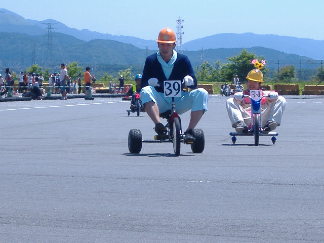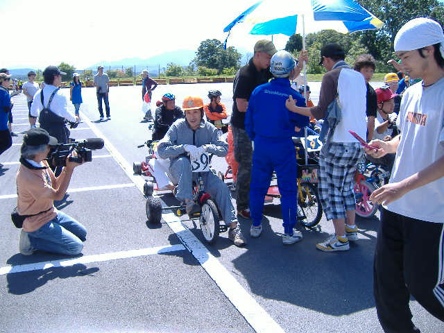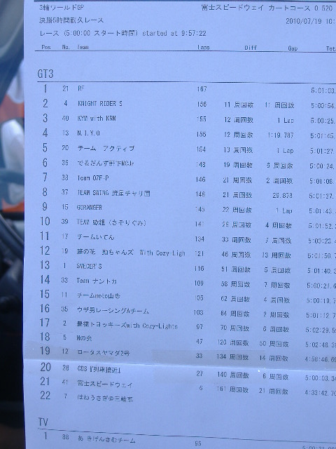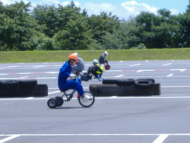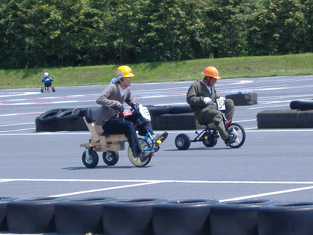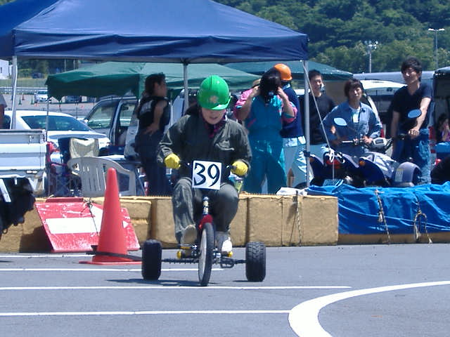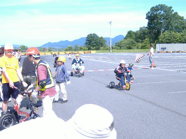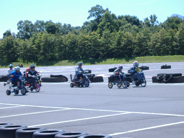 2010,7,19 3輪WGP第二戦 蠍組が初参戦の記念すべき大会 梅雨明けしたばかりで快晴の天気 猛暑が予想される天候で文字通りの熱いレース 今回は、TV取材も入りスタート直前のグリッドにスタンバイする第一ドライバー「ムラ選手」 間もなく5時間に及ぶ死闘が始まる 蠍組は監督の体重を考慮して自作・改造クラスのGT3に参戦 このレースの為にKART整備を中断しマシン製作に没頭する日々が続いた AM9:57 レーススタート 41台の精鋭が猛ダッシュで1コーナーに突っ込む あまりの速さ??にカメラが追い付けず??チームメイトを見失ってしまった 2周回から3周回程度で次々にバトンしていく KARTレースでは滅多に無いショット 女性ドライバーも続々登場です 3輪WGPの最大の魅力 全員が同じ目線でコースを疾走出来るんです GT3クラスのバトル 蠍のドライバーは監督 その後第三コーナーで抜かれてしまいました このマシン、鉄と木のハイブリット素材です 三輪車に嵌ってしまったお姉さま 私は無理です・・・と言いながら乗って見たらこの笑顔 でも、3輪WGPに参加した人ならこの笑顔の理由が解ります 猛暑の中 5時間の長い戦いは終わった 最後の激走で疲れ果ててしまったS-PROJECTの砂利天さん お疲れ様でした GT3クラス Car39 TEAM 蠍組 車名「資源ゴミ1号」 出走41台 Car39 総合10位 NOトラブルで完走 正式なレース結果 そう 第二戦の参戦目的 多方面との交流 マシン製作の熟成度の確認 普段コースを走らない人たちをコースに出す そしてバーベーキューしながら楽しむ 全ての目的は満点以上に達成されました 10位と言う結果 皆さん速くないジャンと思いますよね?? 参加したメンバー全員結果にとても満足してます だってバーべキューしながら遊んでての結果だからね 新たな発見 最初は乗らないと言ってた女性陣 終わってから「楽しかった」「もっと乗りたい」「練習するぞ」と満面の笑みで会話してます たかが三輪車・・されど三輪車 とても奥が深いと感じました TEAM監督として 3輪WGPは予想以上の成果が上がりました 初めてコースを走った仲間、コーナーリングテクニックが解らず悩んだでしょう 普段KARTに乗っている仲間はKARTのヒントが見えたでしょう それにチームワークがどれだけ大切かも感じてもらえたと思います 残念な事もありました 長時間のレースなのに音も無く静かな戦い 個々の良い所、悪い所が全て明るみに出てしまいました しかし反省して次に繋げれば良いので頑張りましょう それにしても本当に楽しいレースです レースの原点ココにあり まさにその言葉がぴったりです 参加した人しか手に入らない大きな収穫もあります 収穫できるか出来ないかも個人差ですけど・・・ また次回頑張ります 次は「勝ち」に行きますよ!! 勿論遊びも全開で |